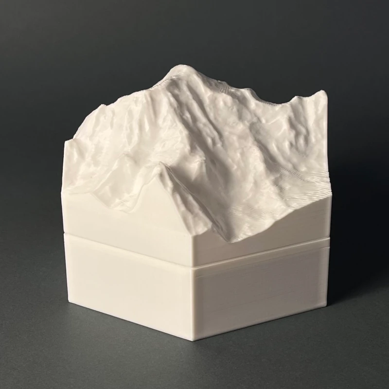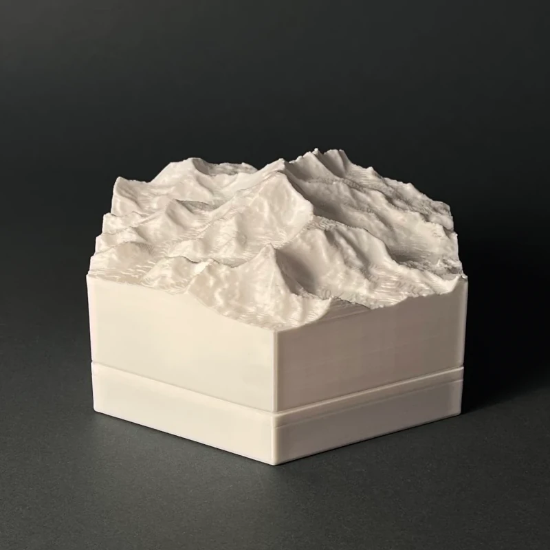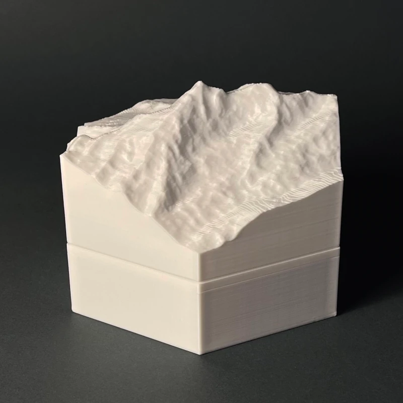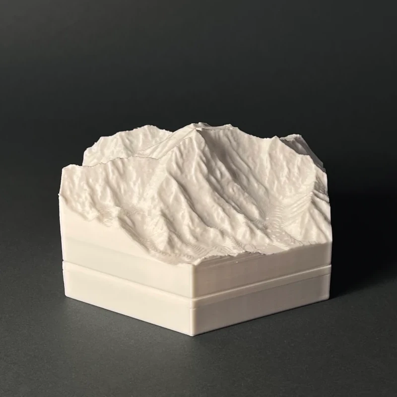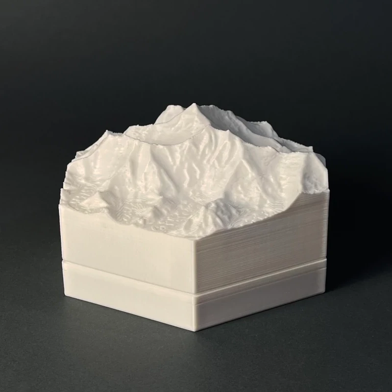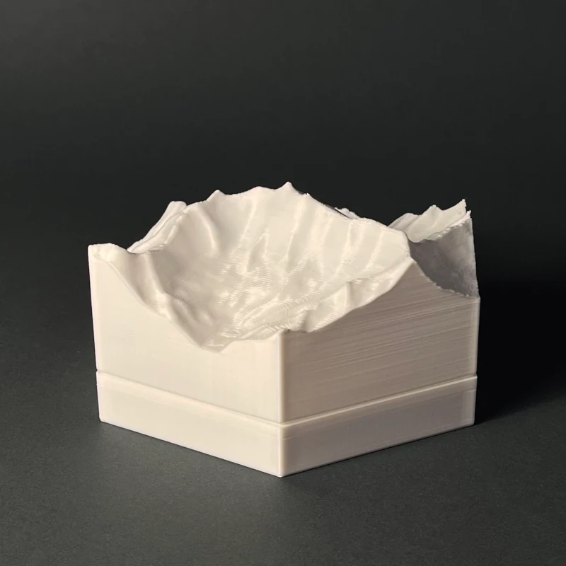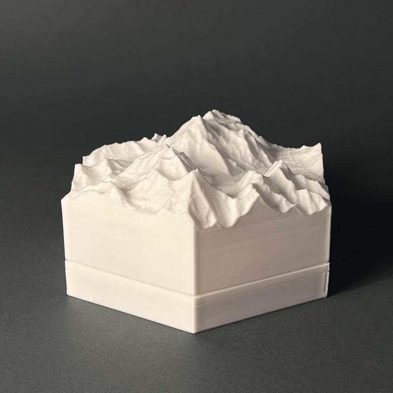 We produce 3D terrain models by 3D printing, which is a precise, computer guided and waste-free process. With the eco-friendly material PLA, even some production errors or experiments with new models does not polute the nature.