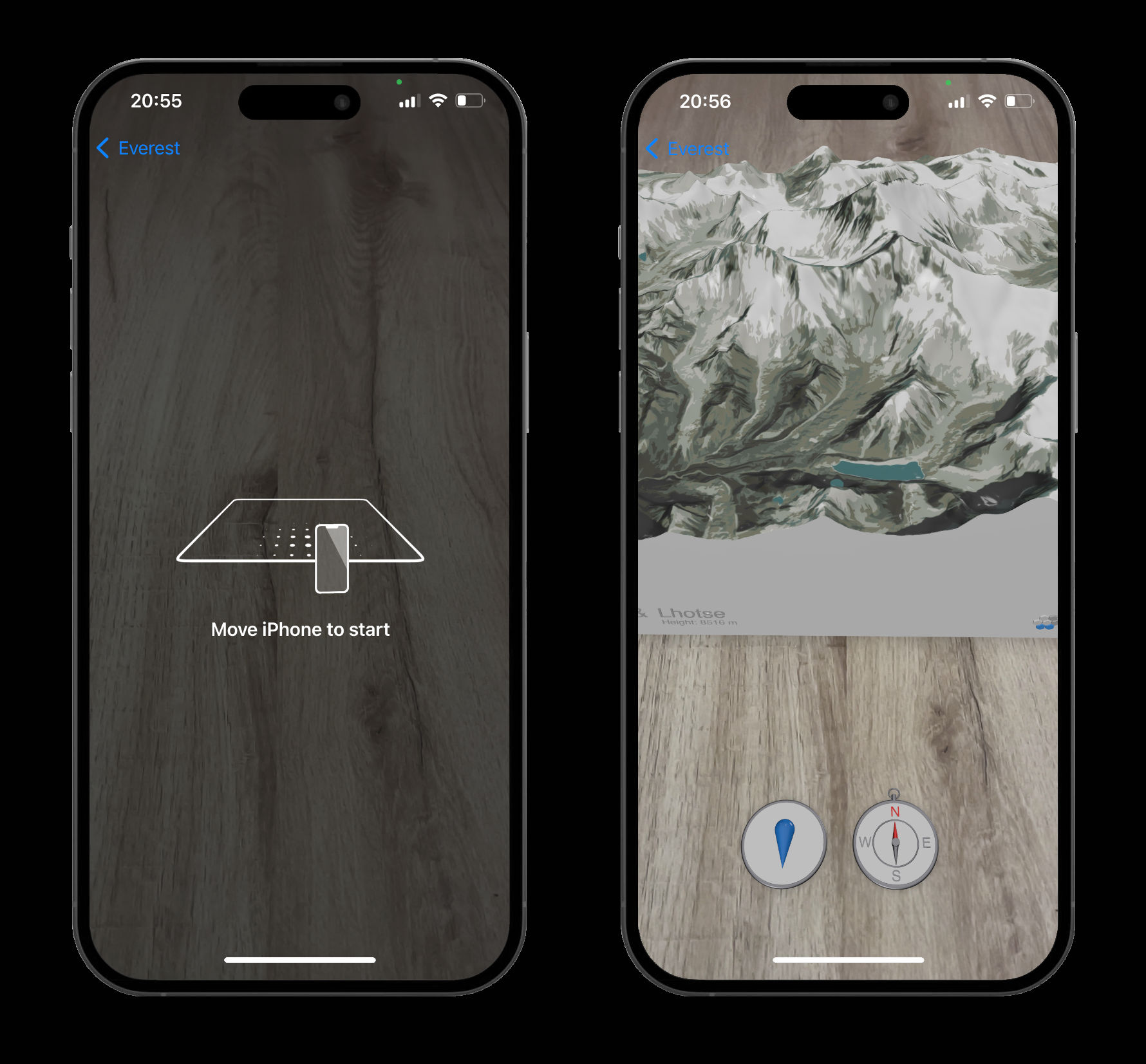 You will be guided by a simple animation, so please continue to move your iPhone or iPad left and right until you see the peak model.