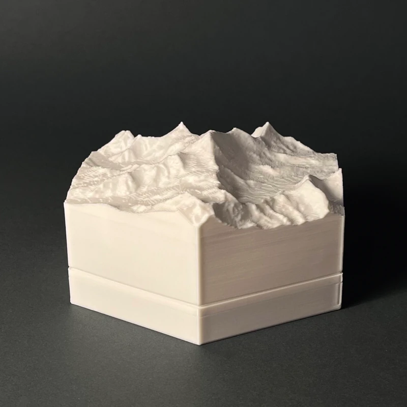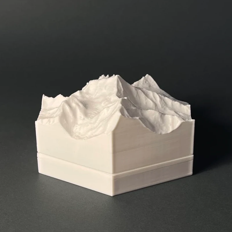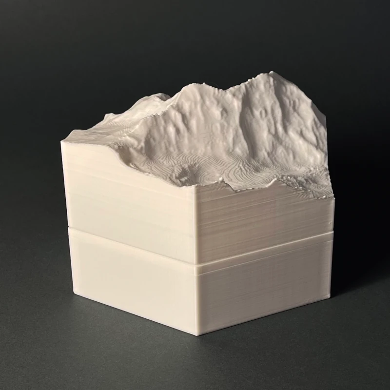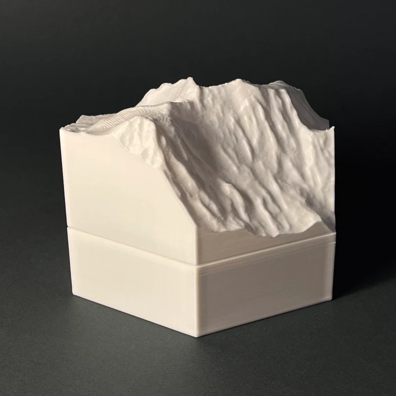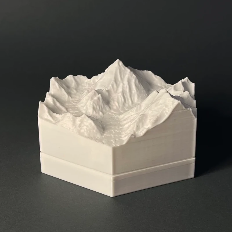 We produce 3D terrain models by 3D printing, which is a precise, computer guided and waste-free process. With the eco-friendly material PLA, even some production errors or experiments with new models does not polute the nature.