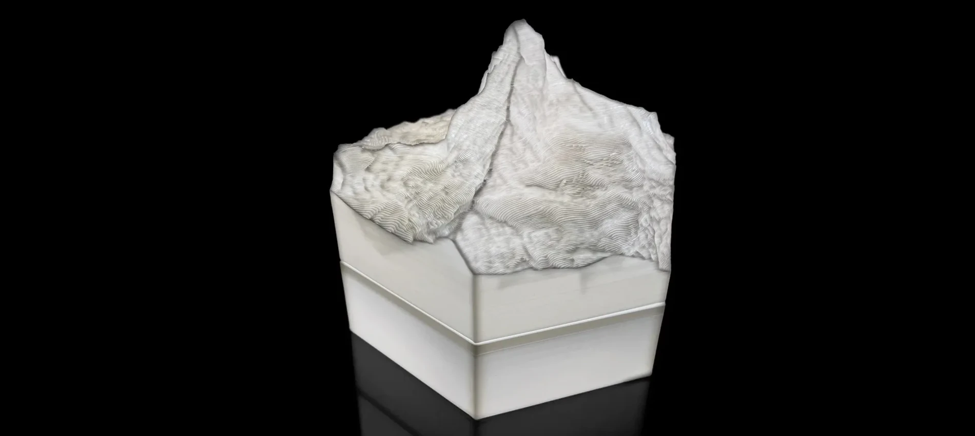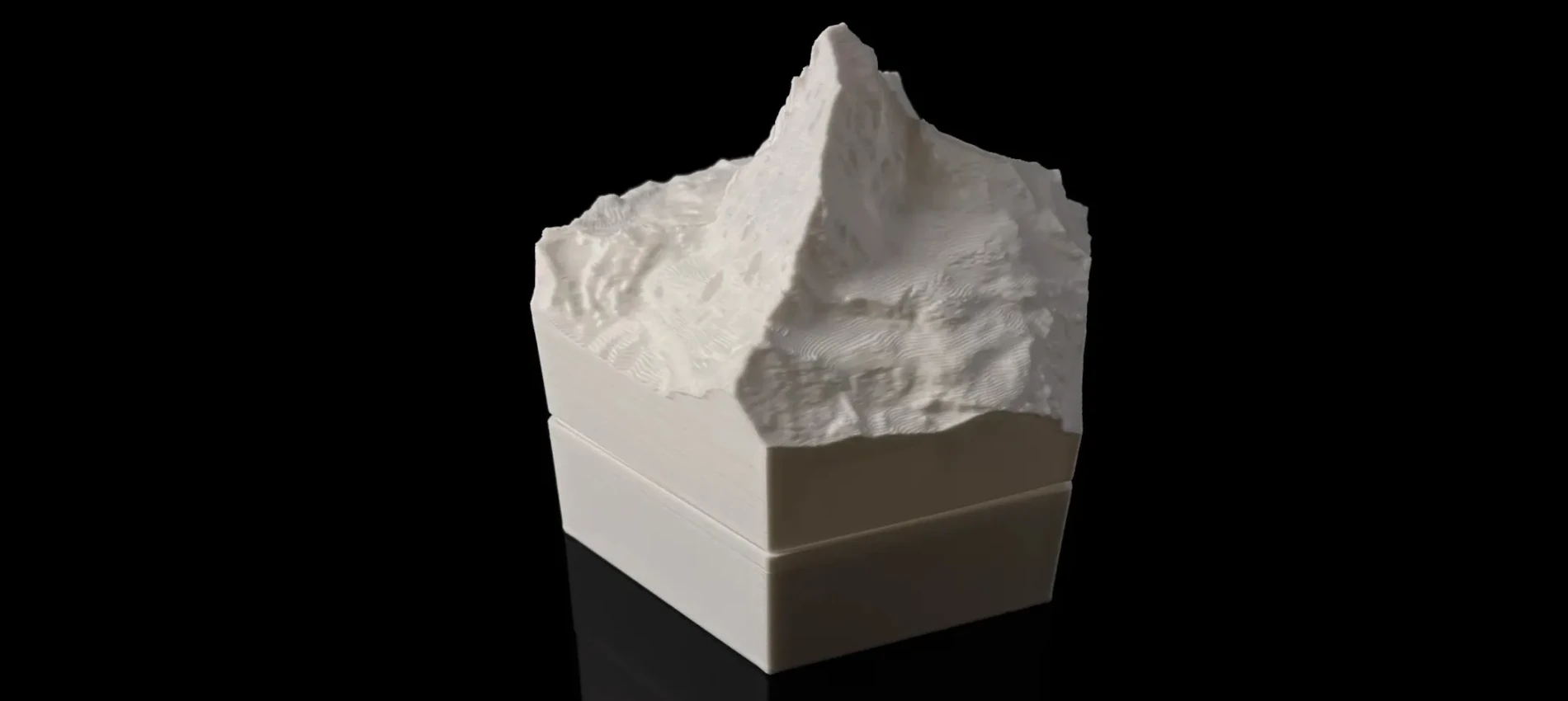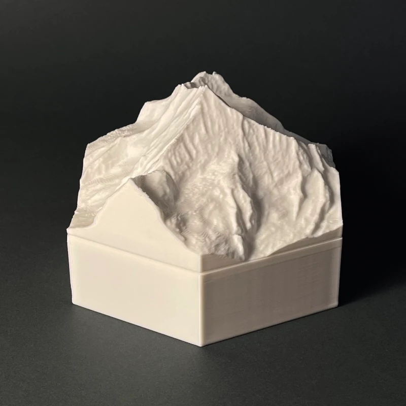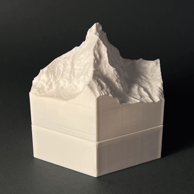 We produce 3D terrain models by 3D printing, which is a precise, computer guided and waste-free process. With the eco-friendly material PLA, even some production errors or experiments with new models does not polute the nature.