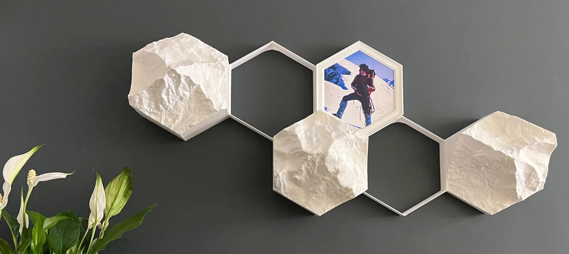 All the terrain models are hexagon shaped. They can be attached to frames and other modules to form various modular installations.